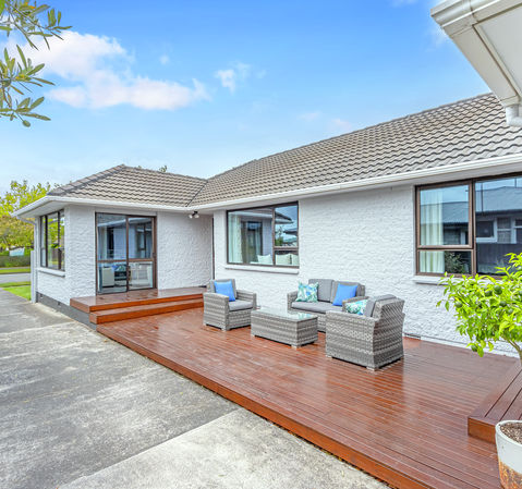 168m2 family home. 3 double bedrooms, 2 bathrooms, 2 living rooms. Private sunny deck. Double garage